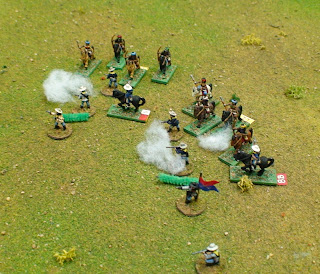 The nice thing about the plains and the ability to manuever quickly with Indians in Piquet. Over the next few frames you will see the two Indian commands move quickly on to the cavalry's flank.